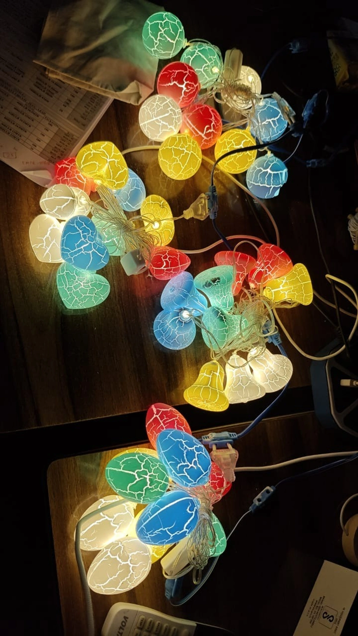 Cracked pattern string lights in 4 different patterns 10 pc in each string(example 10balls/stars).Length 2 mtrs