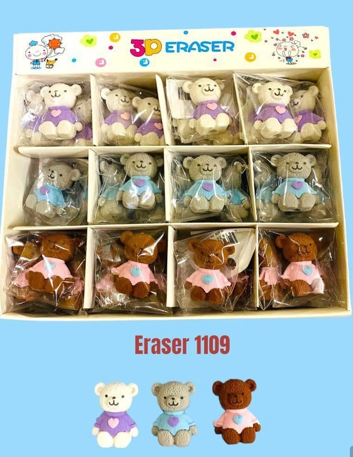 Cutest ever mini eraser Teddy 🧸 n elephant 🐘 pack of 12