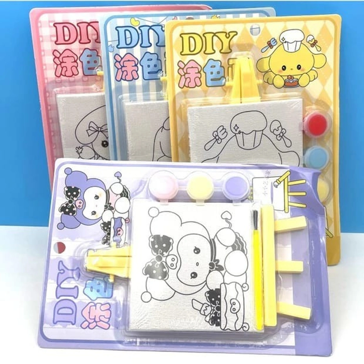 design available- unicorn, kuromi and cake theme canvas with easel n colors combo