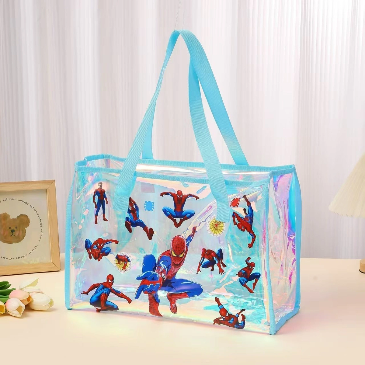 Holographic tote bags with zip 17 Inches plus.Character available now Kuromi, spiderman and space