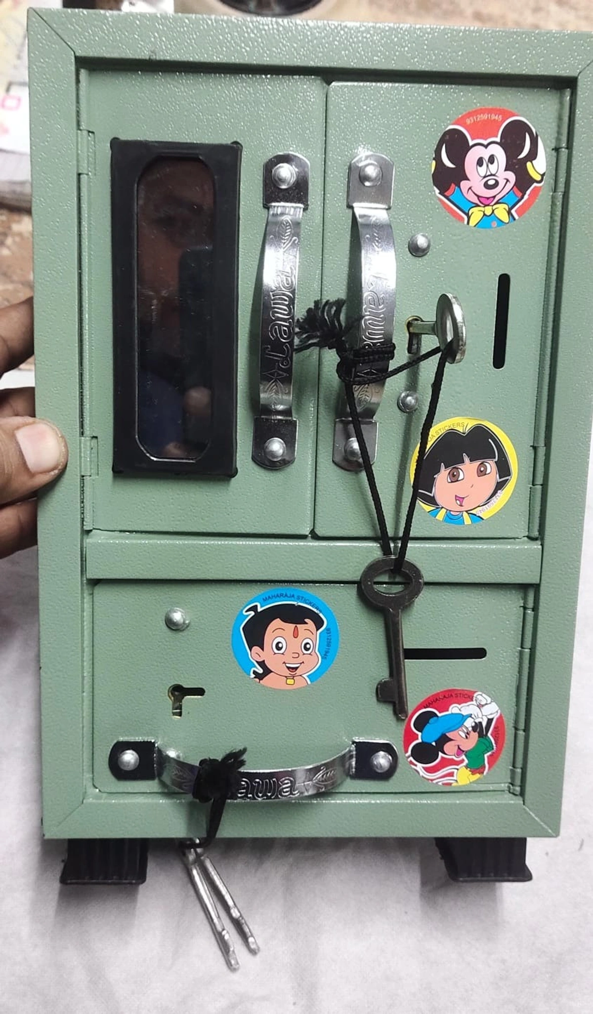 Big metal almirah cum piggy bank with two separate locks