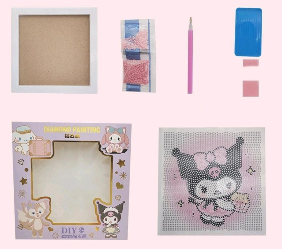 Children'S Handmade Diy Diamond Drawing Framed Cartoon Girl Toy Sticker Material Package