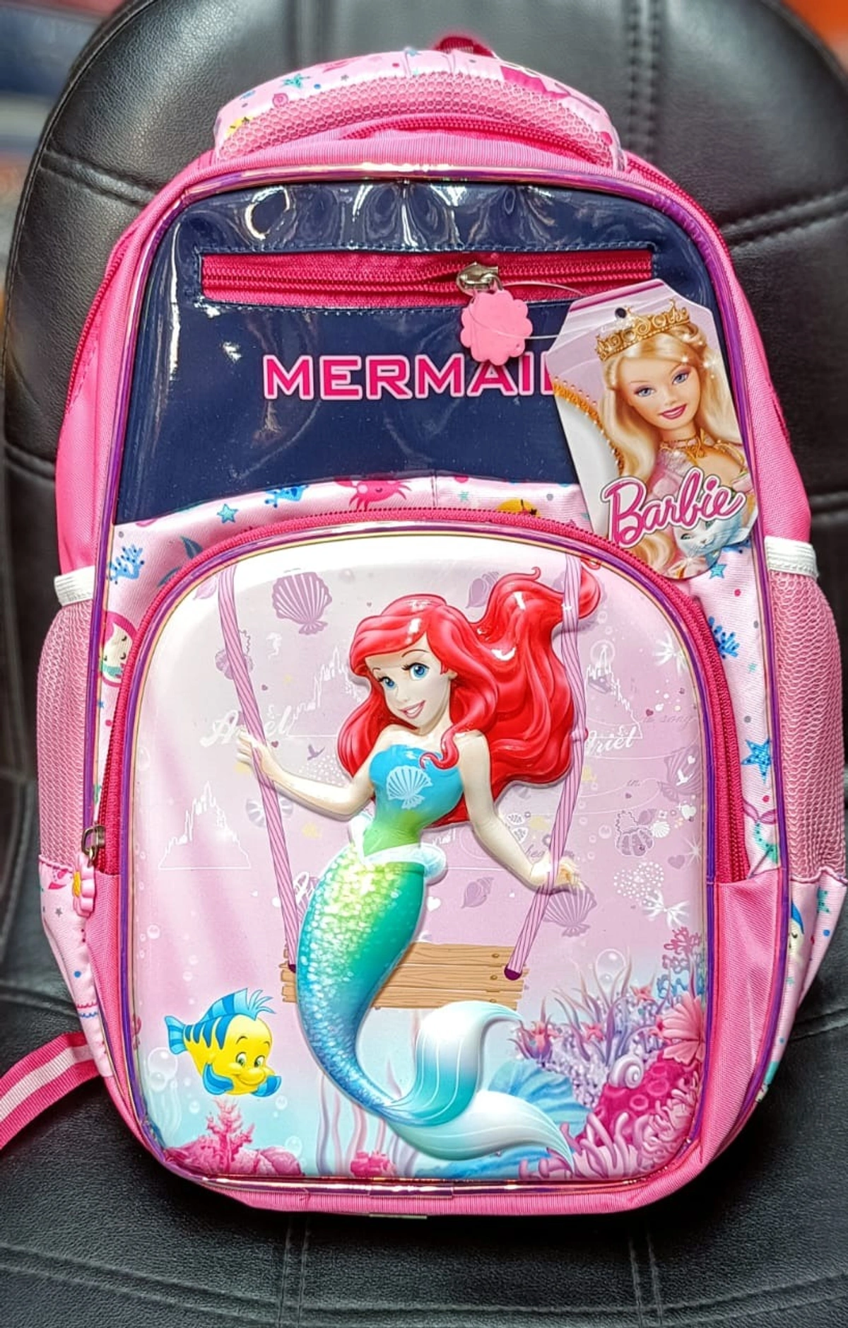 Cute embossed mermaid 14 inch bagpack with 4 zips