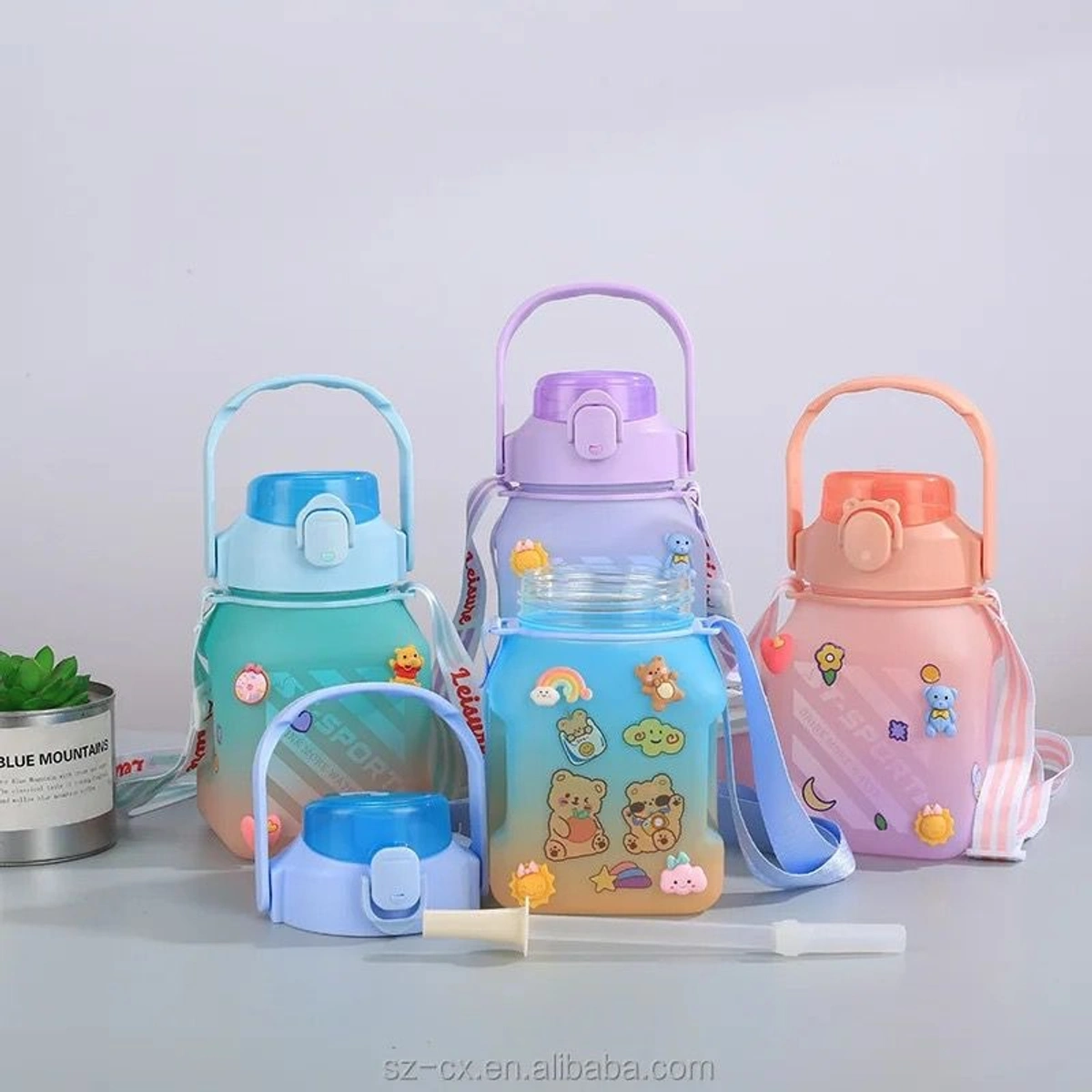 Cute new shape sipper bottles with straw and stickers Capacity 1500 ml Plastic BPA free Color random only