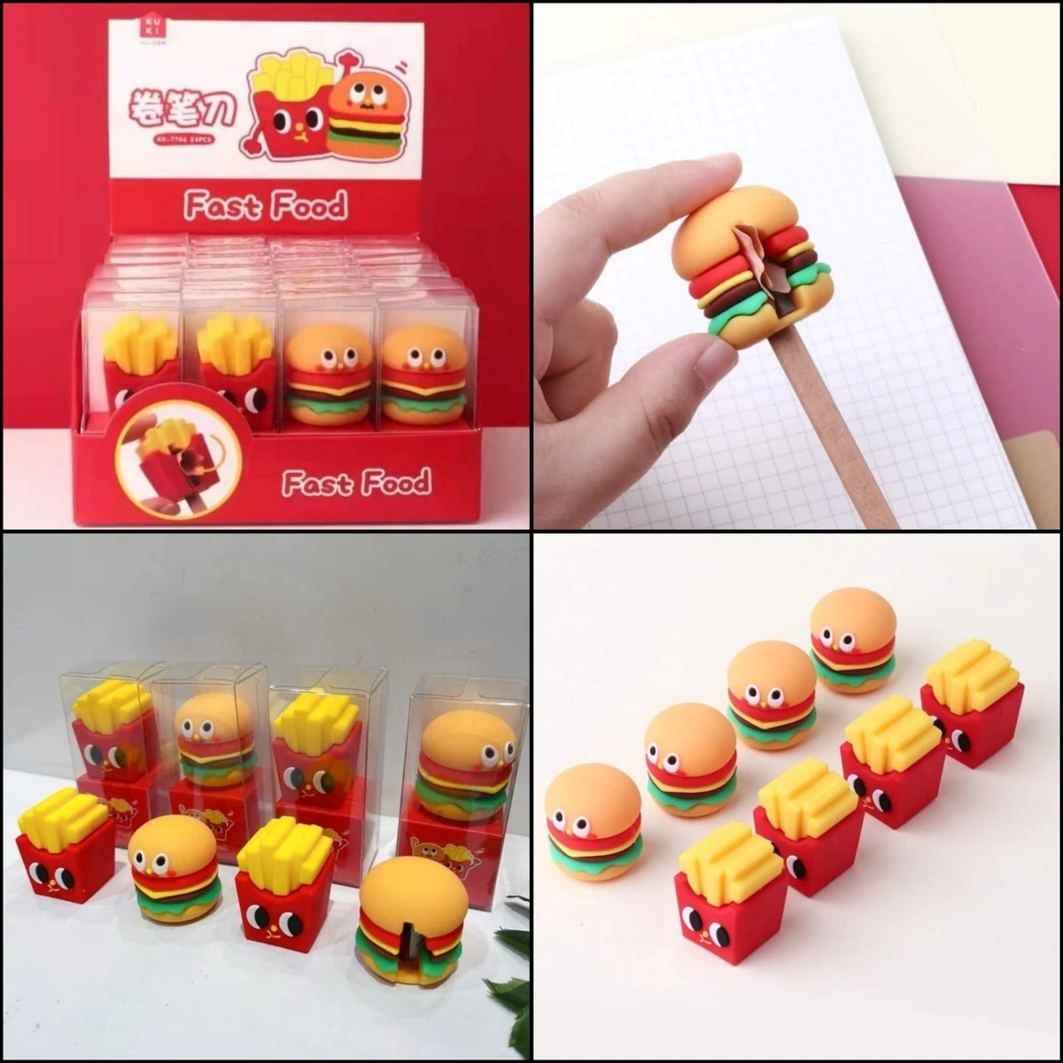 Cutest ever silicon sharpeners in single blister packing Astronaut Fast food set of 2