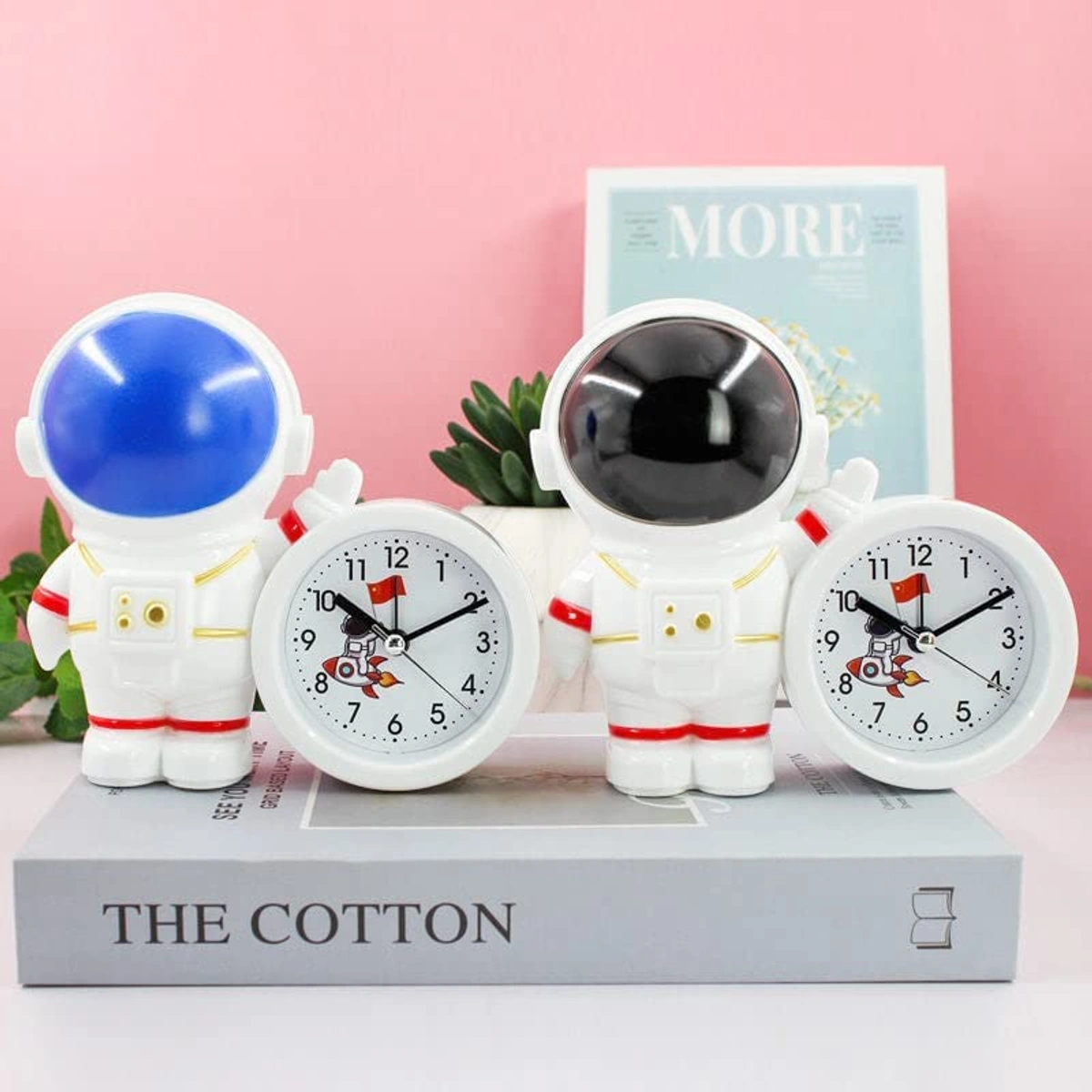 HomeoCulture Pack of 1 Space Theme Astronaut Robot Alarm Clock Space Twin Bell Rocket Astronaut Theme Study Table Clock Silent Bedside Alarm Clock for Kids Room Girls Boys Stationary Birthday Kanjak Return Gift(Random Colour)