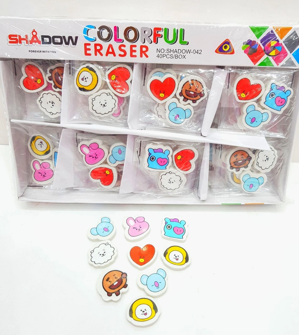 New bts erasers 3 small erasers in 1 packet 1 box contains 40 pkts