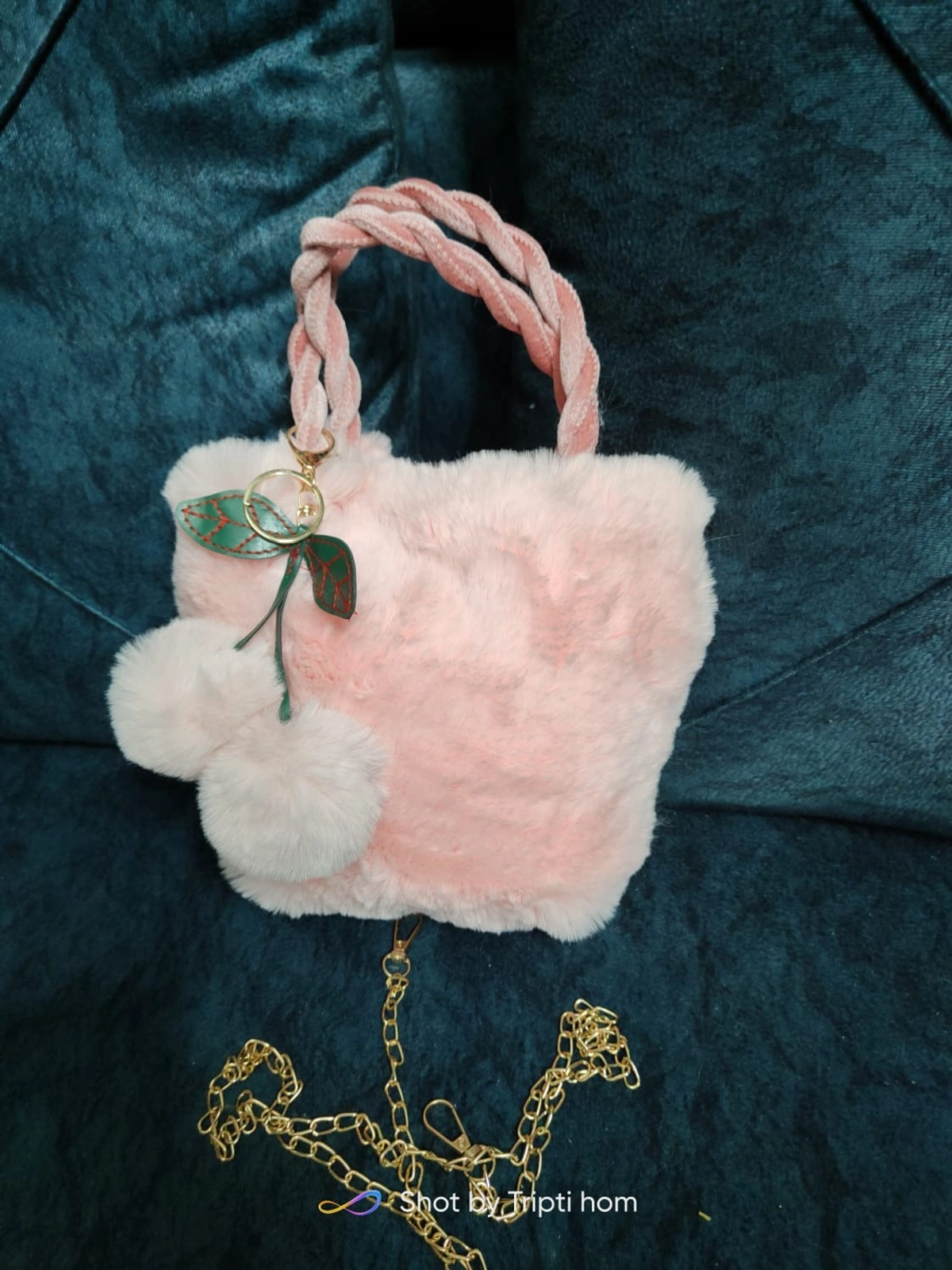 Premium quality fur purse with sling chains Real pic shared Over 10 colors available