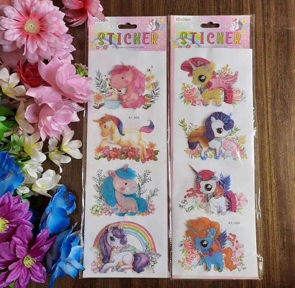 Unicorn Stickers (Set of 2 Cards) 3D Puffy Cute Stylish Printed Stickers Diary Notes for Kids/Craft Scrapbooking| Pinata fillers|