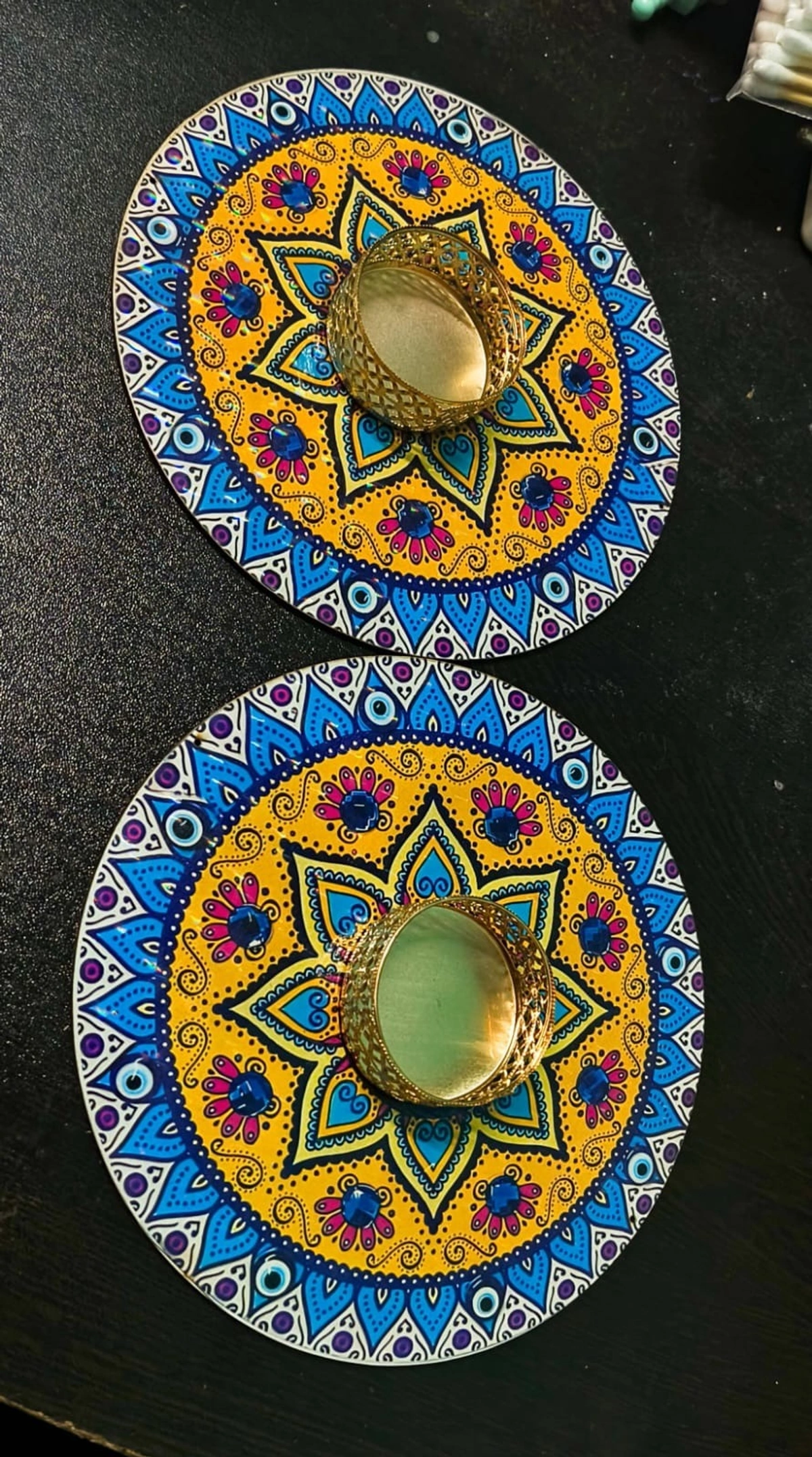 Mandala mdf tealight holder in 6 inches. 2 pcs Wax tealight included