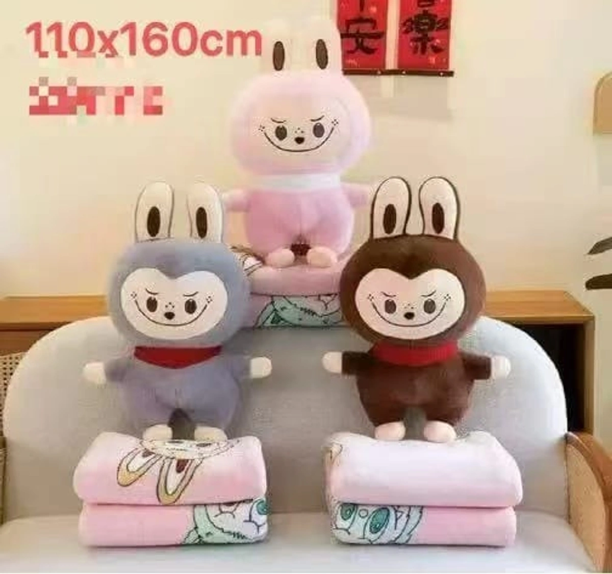 New arrival labubu toy with blanket inside Color random only Blanket size 110*160 cms