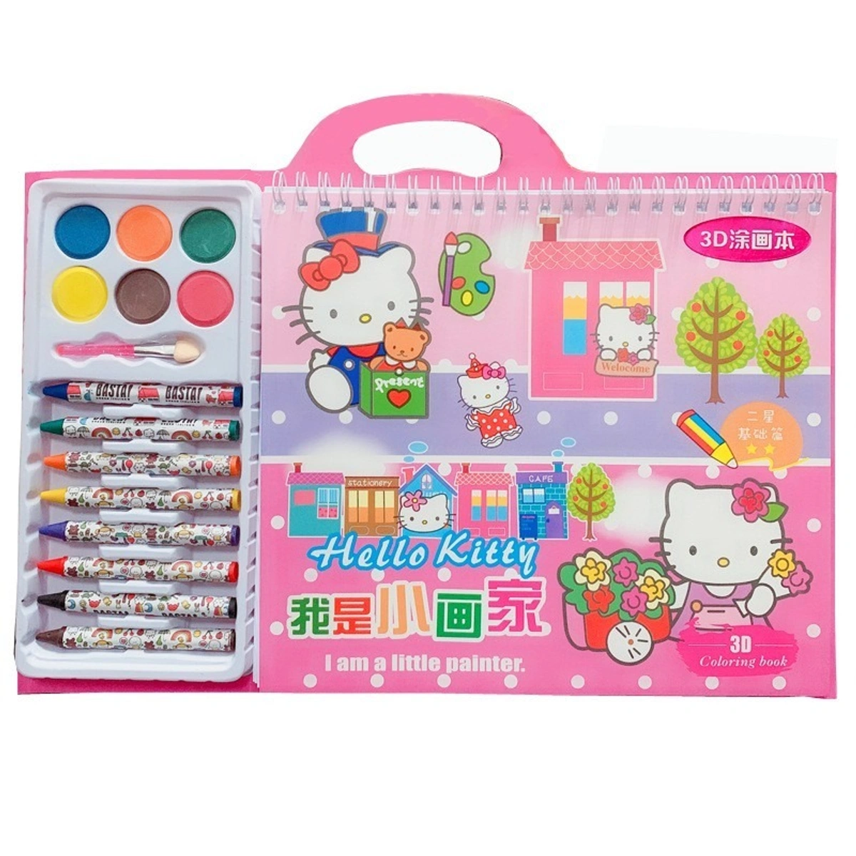 New coloring books with water color, crayons and brush