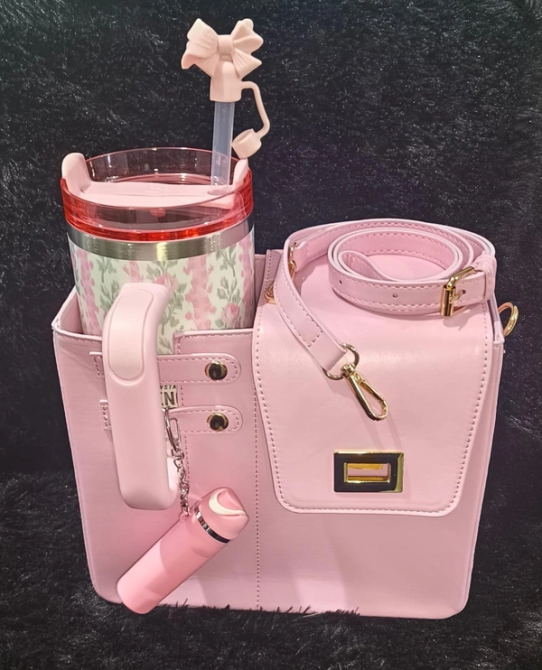 New hc premium stanley combo 1 stanley bag 1 stanley floral sipper 1 keychain 1 straw stopper Color of bag n stanley will remain same, rest two items based on availability