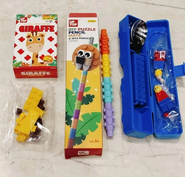 New lego combo 1 pencil, 1 pen, 1 sharpener, 1 cutlery set. Design totally random