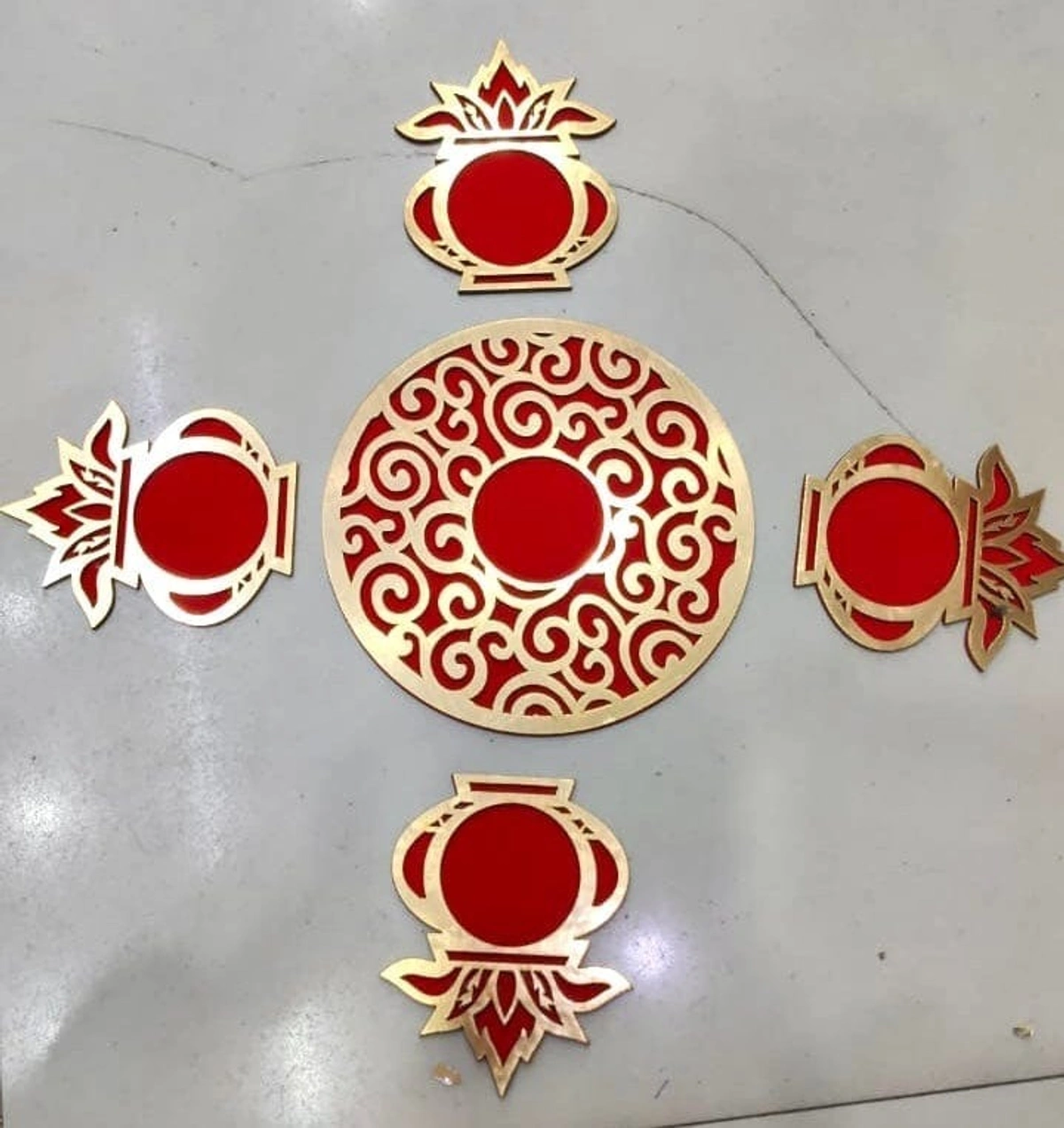 New mdf rangoli set 3 designs available Elephant, hand and kalash Buy 1 set with wax tealight