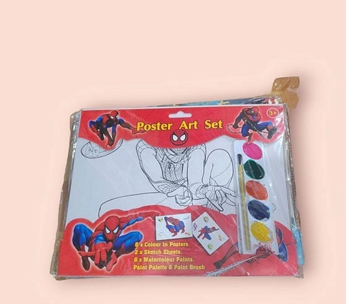 Poster art set Contains 6 x Colour In Posters 2 x Sketch Sheets 6 x Watercolour Paints Paint Palette & Paint Brush
