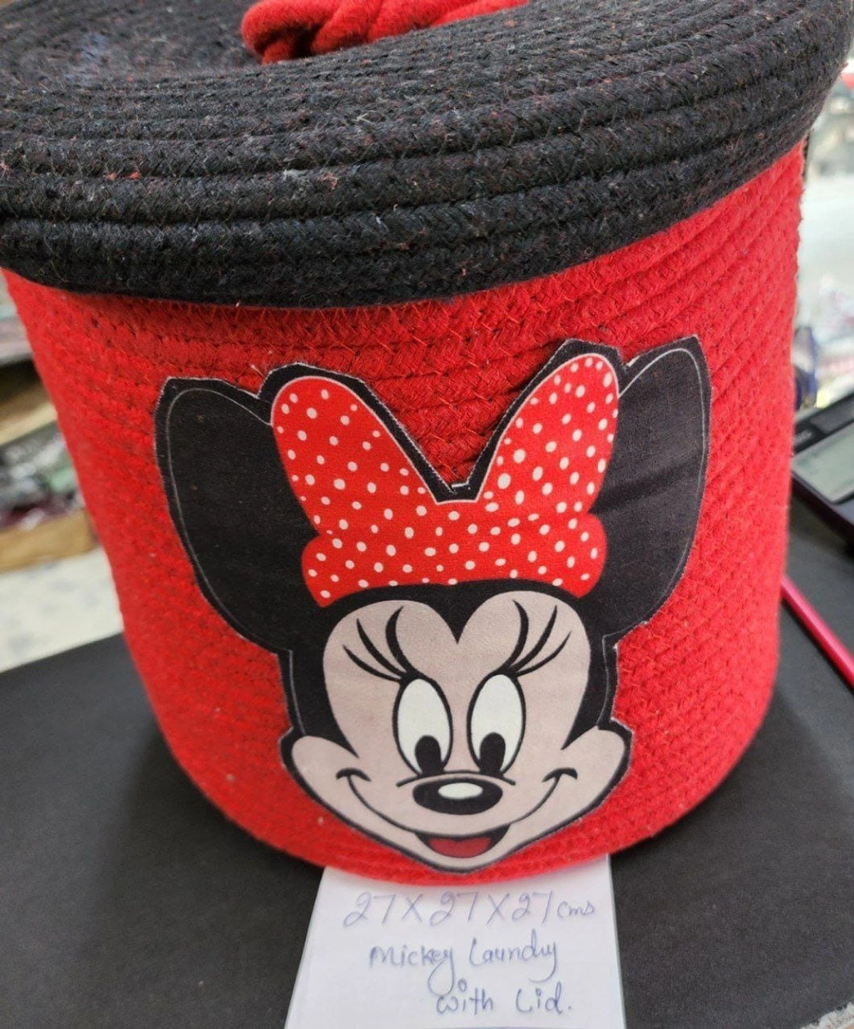 Premium quality Minnie laundry bag with lid Jute material