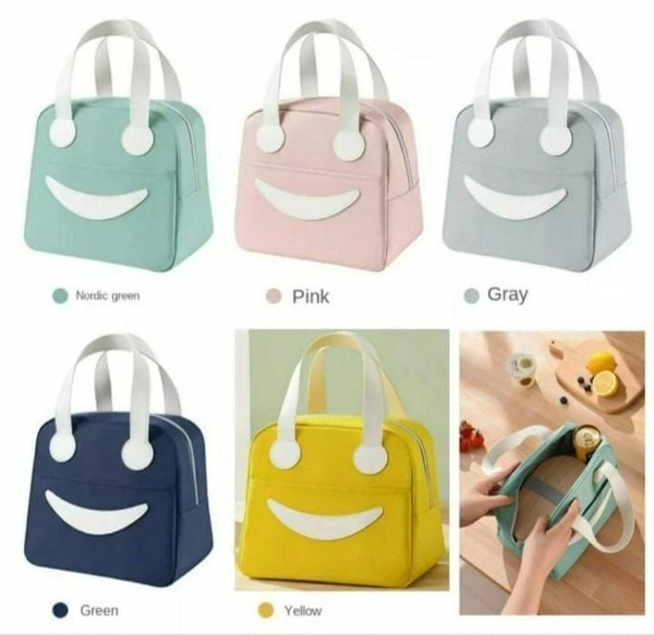 Premium quality smiley insulated Lunch bag Color random only 24x13x28 cms