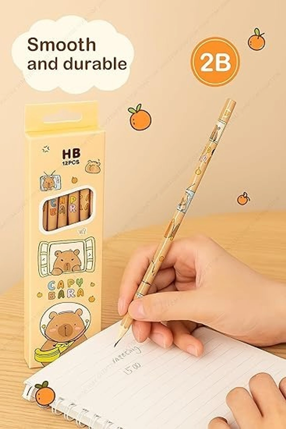Set of 12 Cute Cartoon HB Pencils - 0.5mm Graphite, Wood-C Composite, Ideal for Writing & Drawing - Student-Friendly School Supplies (Capy Bare Brown)
