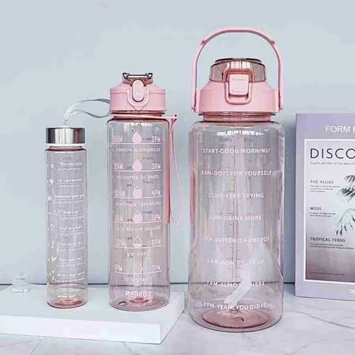 Set of 3 motivational bottle in new transparent look Capacity 2000ml/900ml/300ml Color random only