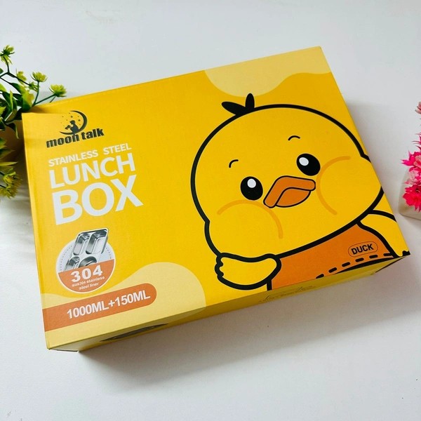 Stainless steel 4 section bento lunch box With leak proof round bowl Spoon and fork included Vibrant color