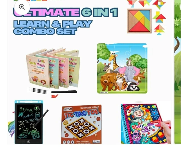 Ultimate 6 in 1 Learn & Play Complete Combo Set for Kids | Set of 4 Sank Magic Book, 1 Water Magic Book, 1 Led Tablet, 1 Tic Toe Game, 3 Jigsaw Puzzle & 1 Tangram