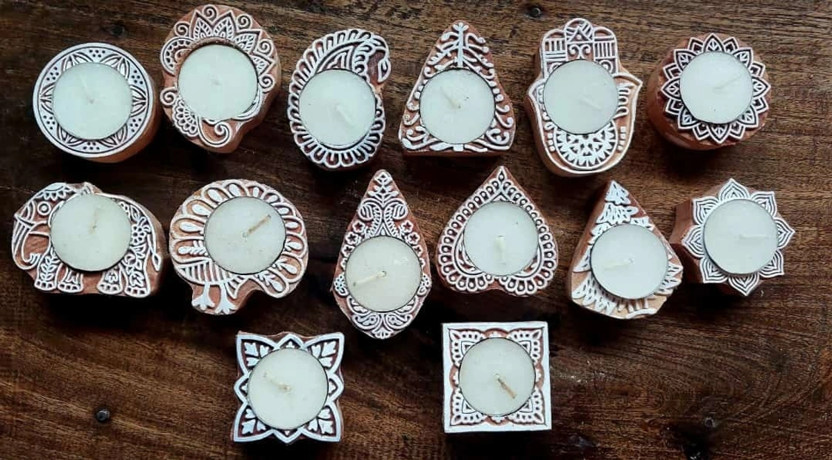 Wooden candle with beautiful carving designs size approx 5 inch