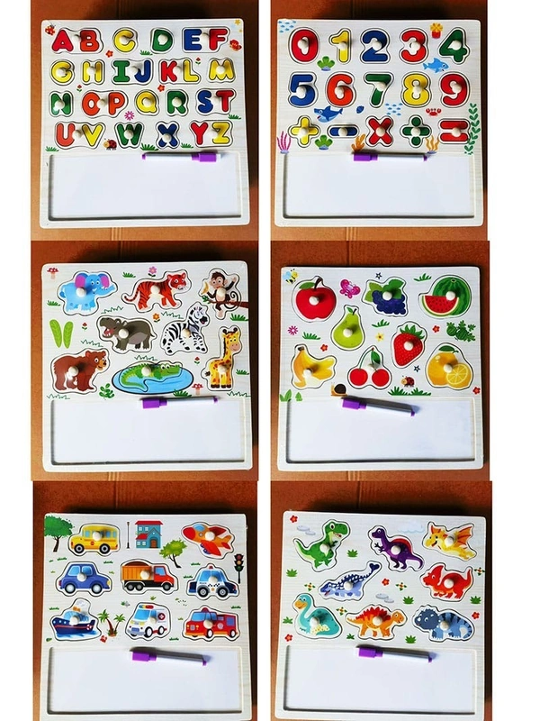 Wooden pyzzle board with whiteboard on the bottom. Design random